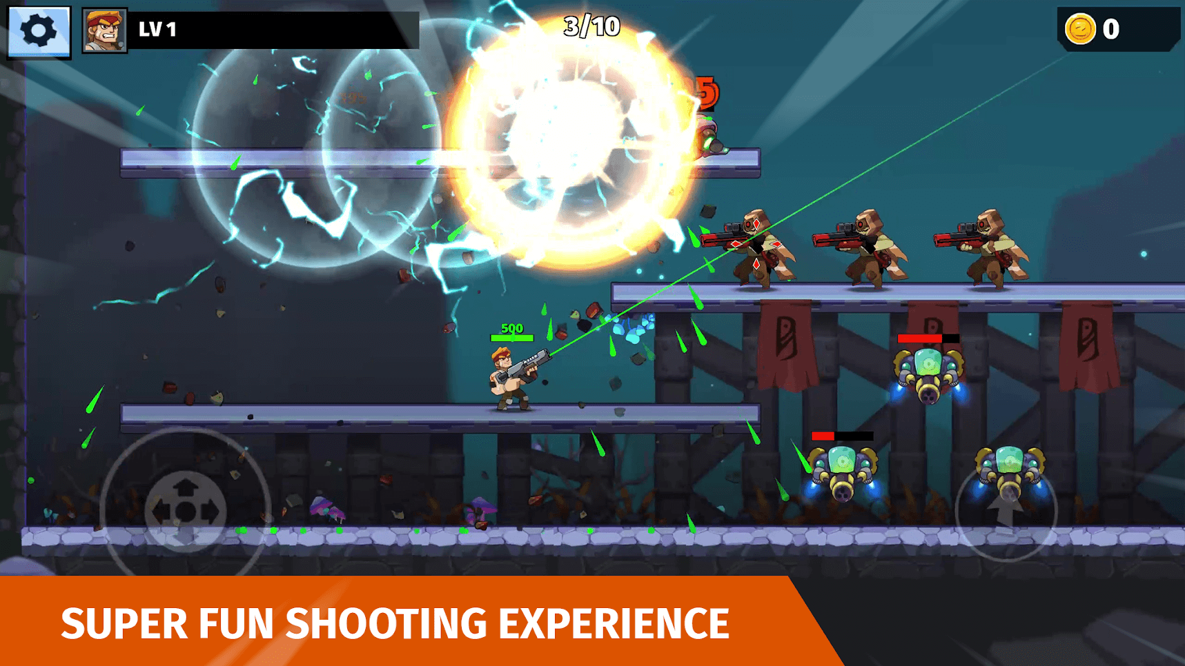 پس از این افتتاحیه نسبتاً خوب Auto Hero: Auto-fire platformer، کم کم وارد اصل ماجرا می شوید. جهان بازی از استیج های مختلف تشکیل شده است و هر استیج چند مرحله دارد که باید آنها را پشت سر بگذارید. دشمن ها در مراحل ابتدایی به راحتی از پا در می آیند اما رفته رفته علی رغم اینکه کشتن آنها دشوار تر می شود، نوع آنها و پترن های حرکتی و حتی سلاح های آنها هم تغییر می کنند. در هر چند مرحله هم با یک باس قدرتمند مواجه می شوید که این باس ها هم در ادامه قوی تر می شوند و شما را با یک چالش جدی مواجه می کنند. بنابراین در تمام طول بازی باید مراقب عمر گرانبهایتان باشید و تمام حرکت هایتان را با دقت انجام دهید. البته، در طول بازی و با کشتن دشمنان هم می توانید آیتم قلب را به دست بیاورید که مقداری از عمر تان را بر می گرداند. قهرمان شما درخت مهارت های خاصی ندارد. به جای آن، سیستم پیشرفت بازی از پرک ها برای قدرتمند تر کردن قهرمان استفاده می کند. پس از عبور از هر مرحله می توانید از میان چند گزینه یک قدرت خاصی را برای قهرمان تان انتخاب کنید. این قدرت ها می توانند افزایش سرعت تیراندازی، افزایش گلوله هایی که به صورت همزمان شلیک می شوند، کمانه کردن گلوله ها، افزایش عمر، و … باشند. گرافیک بازی بدون تردید یکی از بهترین ویژگی های این بازی است. سازندگان در طراحی جهان بازی سنگ تمام گذاشته اند و انیمیشن ها و افکت ها و نورپردازی های به کار رفته شده در Auto Hero: Auto-fire platformer جلوه های بصری شگفت انگیزی را برای این بازی خلق کرده اند. هرچند، جلوه های بصری این بازی بدون جلوه های سمعی و صداگذاری ها و افکت های صوتی معنای چندانی ندارند. به همین دلیل هم صداهای تیراندازی های دیوانه وار در کنار موسیقی متن این بازی اتمسفری را برای Auto Hero: Auto-fire platformer به وجود آورده است که زبان از وصف آن قاصر می ماند. Auto Hero: Auto-fire platformer توانسته امتیاز 4.3 از 5.0 را در مارکت اندروید به خودش اختصاص دهد و تیم اپلیکیشن یاب قصد دارد آن را به صورت تست شده و کاملاً رایگان در اختیار شما عزیزان قرار دهد. هم اکنون می توانید نسخه اصلی و نسخه مود شده و بدون محدودیت این بازی را از طریق لینک های مستقیمی که در انتهای مطلب قرار داده ایم دانلود کنید و از اجرای آن لذت ببرید!