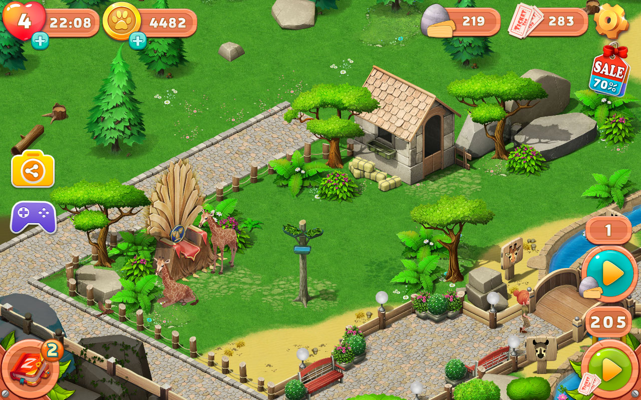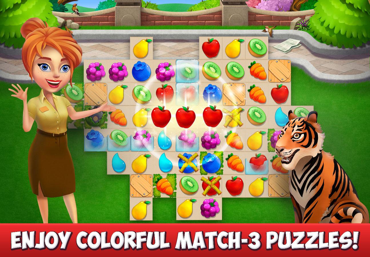 Family Zoo: The Story بازی محبوب، سرگرم کننده و جالب در سبک بازیهای پازل، فکری و مدیریتی از استودیوی Plarium LLC برای دستگاه ها اندروید است که به صورت رایگان در گوگل پلی عرضه شده و تا به امروز میلیون ها بار توسط کاربران اندرویدی سراسر جهان دریافت شده و از محبوب ترین ها به شمار می رود و مثل همیشه تصمیم گرفته ایم همزمان با انتشار، جدیدترین نسخه اش را حضورتان معرفی کنیم و برای بار دیگر به وجدتان بیاوریم! با نصب Family Zoo: The Story برروی تبلت و یا گوشی اندرویدی تان باید با حل پازل های مختلف باغ وحش خود را بسازید و حیوانات مختلفی را به آن بیاورید! قوانین و ساخت بازی Family Zoo: The Story دقیقا مشابه بازیهای پازلی دیگر در سبک تطبیق ساز است که در ان باید با قرار دادن سه یا تعداد بیشتری مهره مشابه در کنار هم آن ها را از بین ببرید و به همین ترتیب همه ی مهره ها موجود در صفحه را از بین ببرید و برای ساعت ها به گوشی میخکوب شوید! باغ وحش شما گل سر سبد بناهای تفریحی در این حوالی است اما ظاهر شهرداری میخواهد یک سوپرمارکت بزرگ به جای آن بسازد ؛ پازل ها را حل کنید و نگذارید این اتفاق بیفتد! شما در واقع با حل پازل های بازی مواد و مصالح مورد نیاز برای تعمیر باغ وحش و همچنین تزئین محل زندگی حیوانات و باغ های اطراف آن ها را بدست خواهید آورد! با دوستان قدیمی و جدیدتان دیدار کنید و با همکاری هم برای تمام حیوانات سرپناهی درست کنید! آنها به شما پناه آورده اند! فکر می کنید بتوانید پذیرای همه شان باشید؟! اگر از علاقه مندان به بازیهای پازل باشید بدون شک محو طراحی و ساخت بازی فوق العاده زیبای Family Zoo: The Story میشوید!