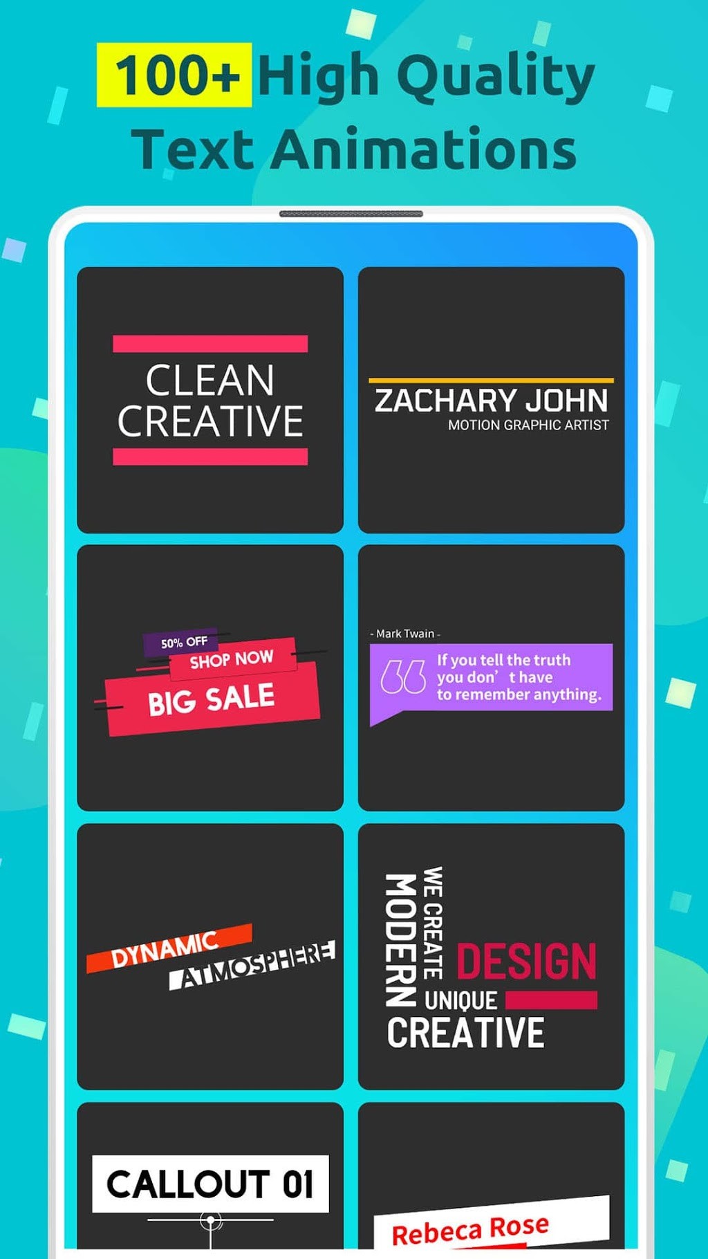 برخی از امکانات و قابلیت های برنامه Hype Text – Animated Text & Intro Maker – MotiOK اندروید :