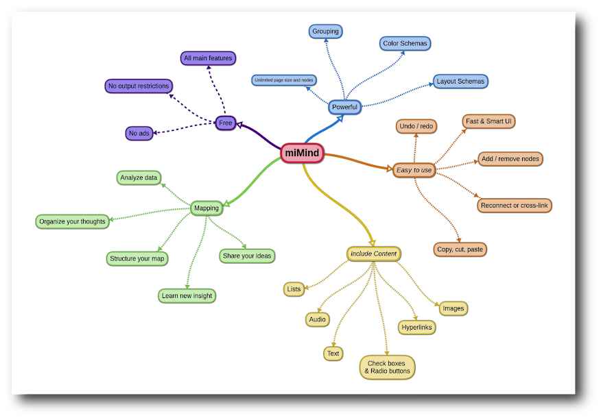 برخی از امکانات و قابلیت های برنامه miMind – Easy Mind Mapping اندروید :