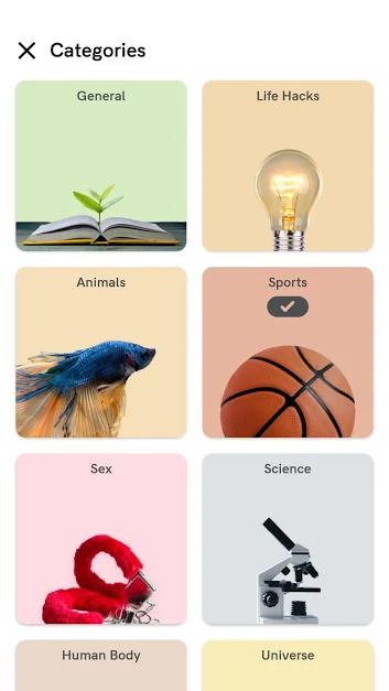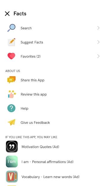 برخی از امکانات و قابلیت های برنامه Daily Random Facts – Get smarter learning trivia اندروید:
