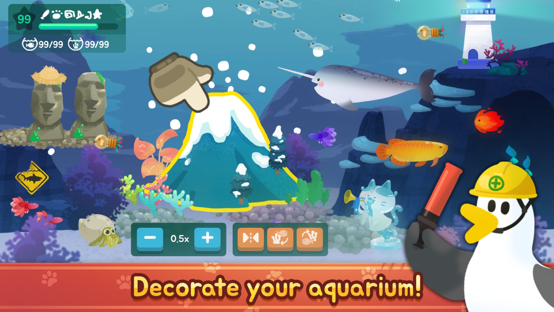 The Fishercat – گربه ماهیگیر نام یک بازی بسیار سرگرم کننده و زیبا در سبک بازی های کژوآل (Casual) یا همان تفننی است که توسط استودیوی LoadComplete کشوره کره جنوبی تولید و به شکل رایگان برای تبلت ها و موبایل های اندرویدی در گوگل پلی منتشر شده است. کلیت این بازی را می توان در یک جمله خیلی ساده بیان کرد. شما در این بازی در نقش یک گربه هستید که برای ماهیگیری به اعماق دریا می رود! او با به سر کردن یک کلاه اکسیژن دار و با در دست داشتن ابزار و وسایل ماهیگیری از جمله نیزه های ماهیگیری بزرگ به اعماق دریاها سفر کرده و انواع و اقسام ماهی ها و آبزیان را شکار می کند. البته همه بازی به همین بخش خلاصه نمی شود. سازندگان تلاش کرده اند تا با طراحی بخش های بیشتر، بازی گربه ماهیگیر را از حالت یکنواخت در بی آورند. به عنوان مثال بخشی برای شخصی سازی بازی در The Fishercat تعبیه شده است که طی آن بازیکنان می توانند با ساخت، مدیریت و طراحی دکور آکواریوم ها به خوبی سرگرم شوند. در بازی The Fishercat شما در کنار دوستانتان در یک جزیره زندگی می کنید و هر از گاهی برای ماهیگیری به دریا می روید. شما می توانید از ابزارهای مختلفی مثل نیزه یا تور ماهیگیری برای شکار ماهیان استفاده کنید. برای پرتاب نیزه فقط کافیست هدف بگیرید و دکمه شوت را بزنید تا نیزه به سمت هدف شما پرتاب شود. همچنین در طول بازی گربه ماهیگیر انواع و اقسام ماهی ها و آیتم های امتیازی متعددی برای شما نمایش داده خواهد شد.